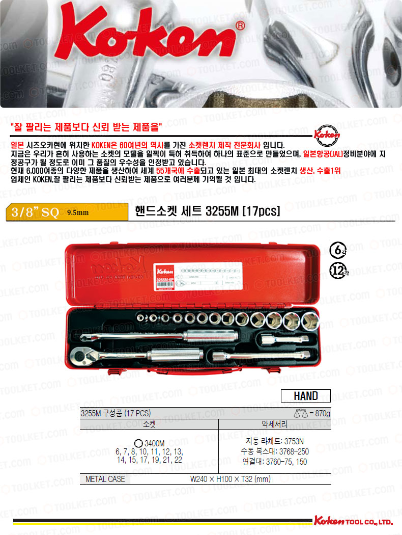 [] 3/8SQ 핸드소켓세트3255M