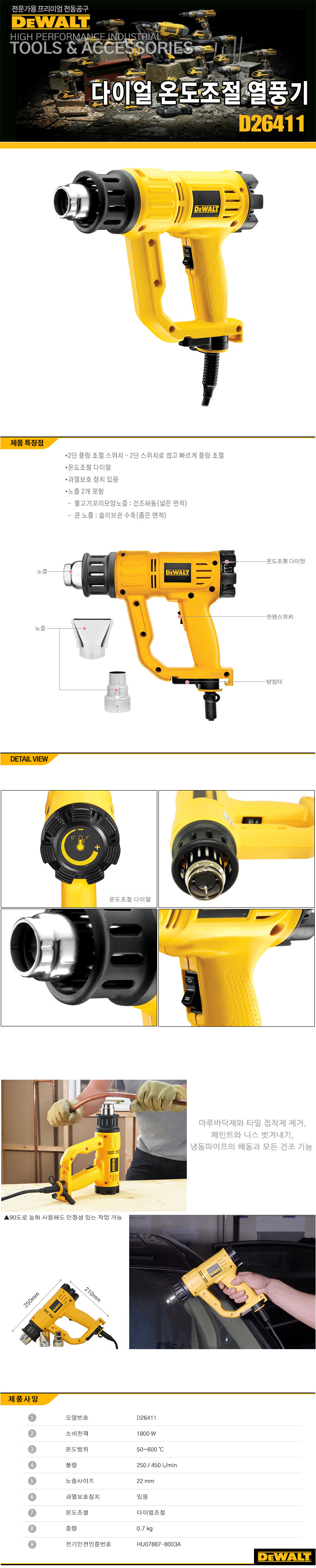 [디월트] 다이얼조절 열풍기D26411