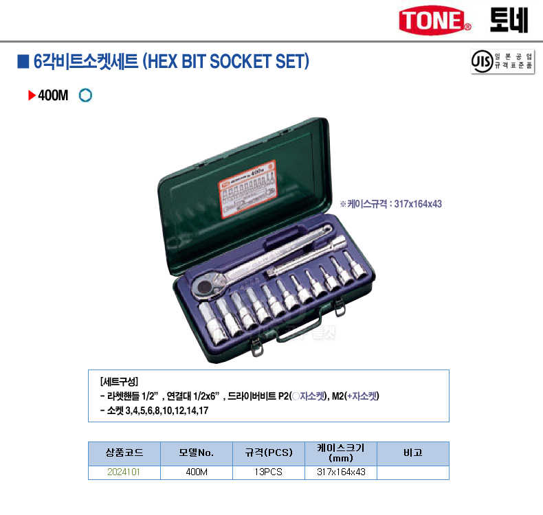 [토네] 1/2 육각비트소켓세트400M