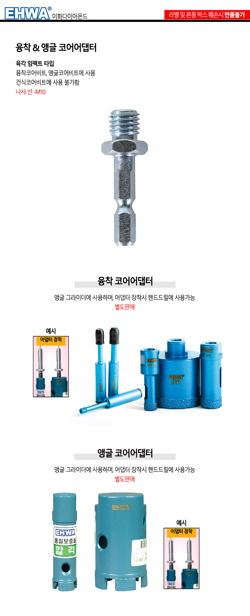 [이화다이아몬드] 융착/앵글 코어어댑터육각 임팩트타입