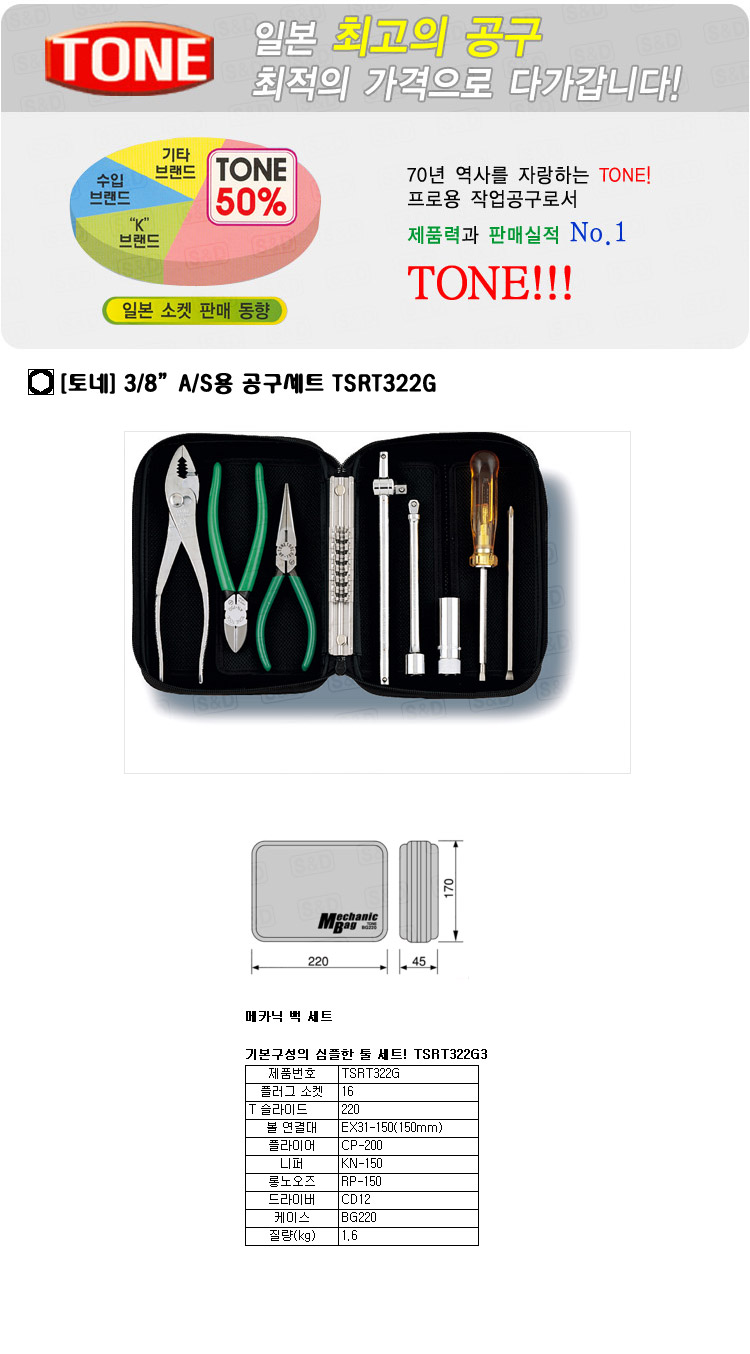 [토네] 3/8" A/S용 공구세트TSRT322G